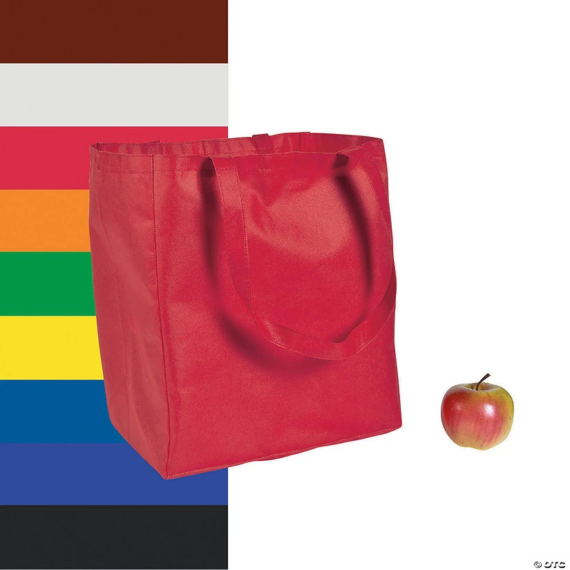 • Durable Quality: Made of cloth, this sturdy tote bag won’t let you or your accessories down. Plus, you can easily store the reusable bag away until you need it again. • Fun Crafts: With some craft tools and imagination, this tote bag could be your next creative project. Perfect as a classroom activity or an at-home craft, this tote bag just needs your personal touch to come to colorful life! • Travel-Friendly: No matter where your day takes you, this tote bag is sure to be a handy companion! Designed with easy-to-use straps and a spacious interior compartment, this tote bag is ready for on-the-go fun! Product Description:Grocery shop in style with these sturdy and environmentally friendly Shopper Tote Bags! These totes can help you get all of your groceries from the store to your vehicle and then in your home with ease. Keep a stash in your vehicle to help with other everyday essentials, like school supplies, library books, swimming gear, lunches and much, much more.Size: 12″ x 8″ x 14″ with 12″ handles.Quantity: 12Material: Nonwoven polypropylene.