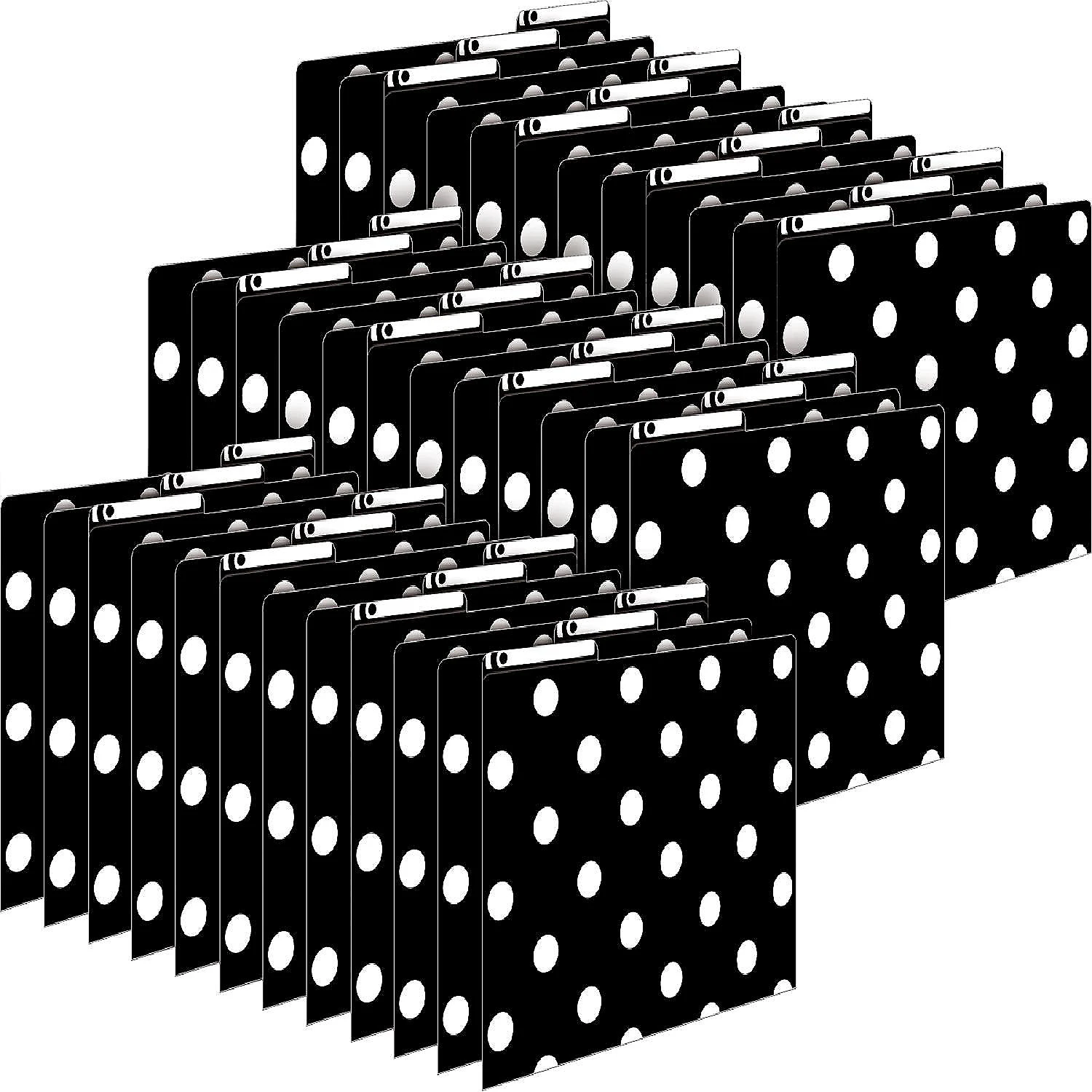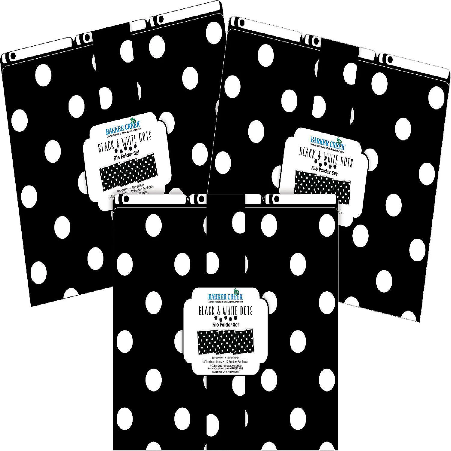 Barker Creek’s fashion-forward Black & White Dot file folders are an affordable way to organize your office, classroom, or home with style and flair! There are 36 file folders that feature a classic black and white dot design on the exterior and a rich, jet black interior. These folders are printed on durable card stock and are 1/3 tabbed which means that they have three tab positions – twelve folders are tabbed on the left, twelve folders are tabbed in the center, and twelve are tabbed on the right. Great for everyday filing needs, transporting documents to meetings, sending work home with students, storing photos, organizing receipts, and archiving momentos. Coordinating products available: Search Barker Creek Dots.