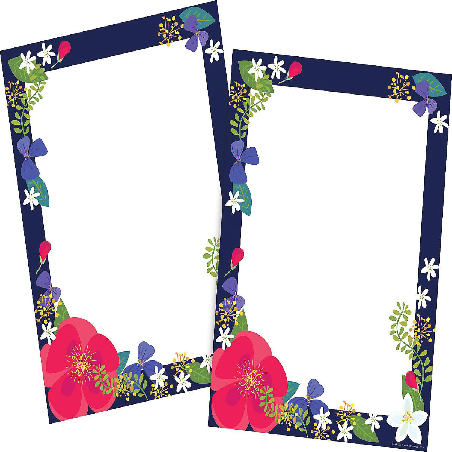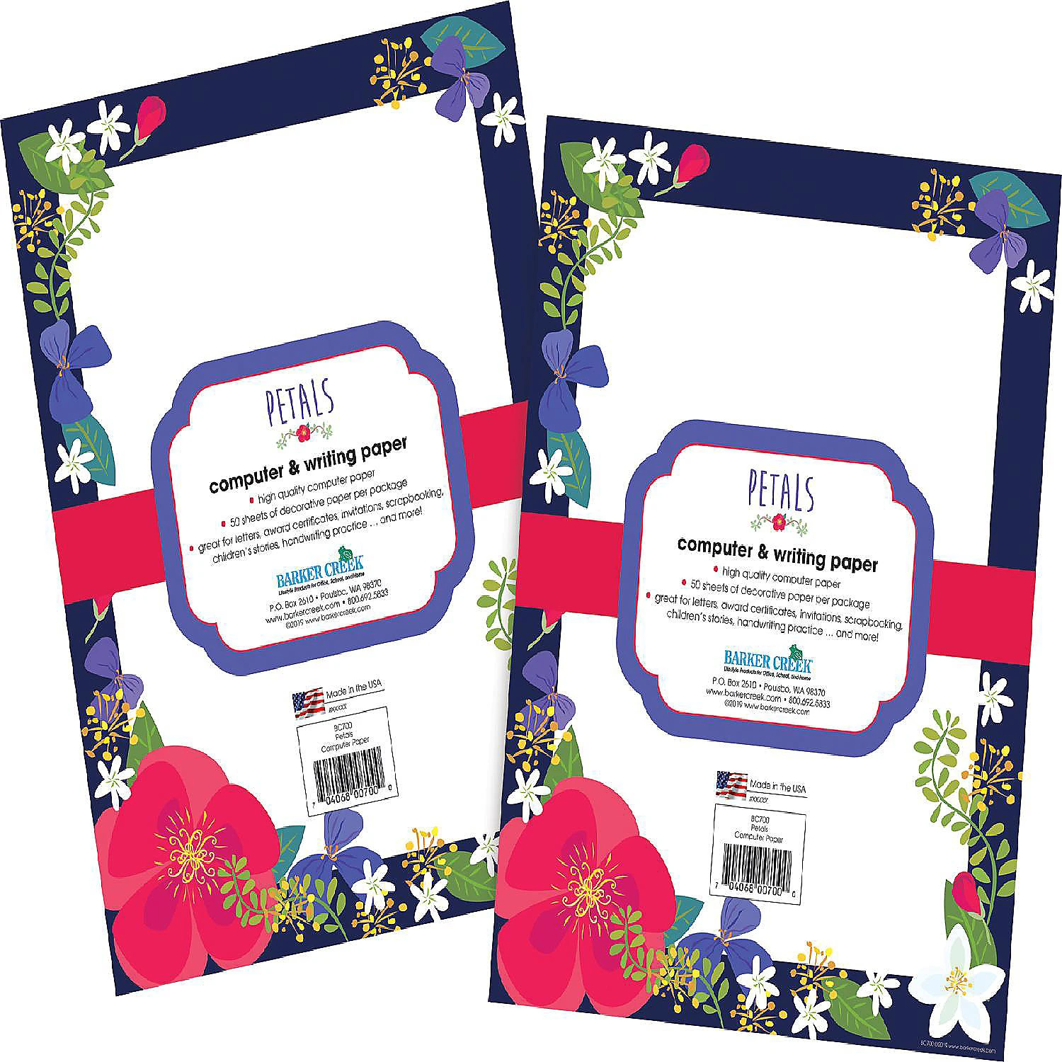 Barker Creek’s Petals Computer Paper is affordable and beautiful. It features a border of beautiful navy with vibrant flowers of various colors and sizes. Use it to add a memorable touch to letters, design custom awards and certificates, add an extra “wow” to presentations and reports, create gorgeous invitations, make stunning bulletin boards, and so much more! Each set includes 100 8½” x 11” sheets of decorative paper which is compatible with most laser printers. Coordinating products available: Search Barker Creek Petals & Prickles.