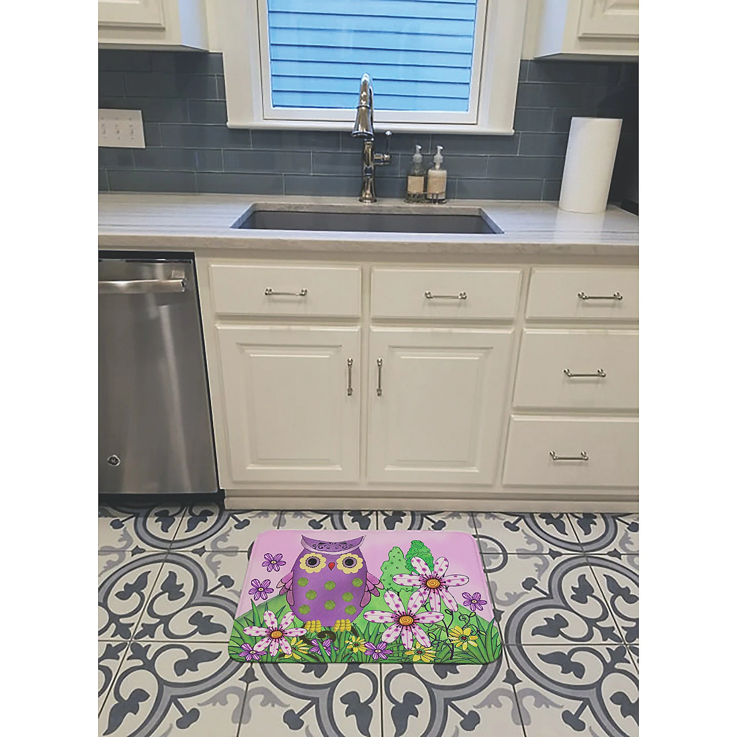 Who is Your Friend Owl Machine Washable Memory Foam Mat. Artwork on the floor of your bathroom. Plush top and very comfortable to the touch. This is a Machine Washable bath or kitchen mat that is made with Memory Foam. It features a top surface in coral fleece and is made using 100% microfiber fabric. The entire surface is full-cushion memory foam, ensuring the ultimate in comfort. The underside of the mat features a non-skid SBR surface for the best in safety and convenience. It measures 19 inches by 27 inches and is Proudly Printed in the USA with artwork from our licensed Artists. The design is dyed into the fibers of the rug for a long lasting image. Wash in cold water and dry in the dryer on low temp. Follow the care instructions on the product tag. This Floor Mat is from Caroline’s Treasures Birds category of products.
