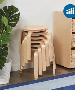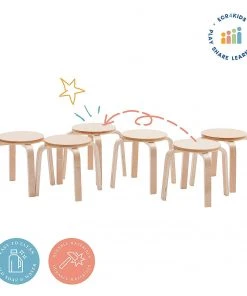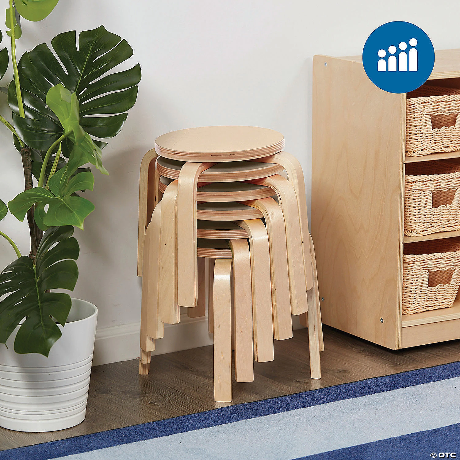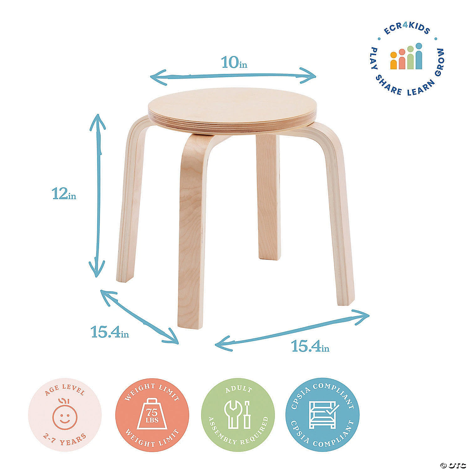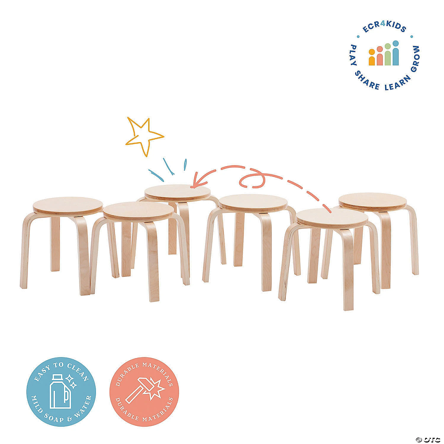 Give your kids a seat of their own with the Bentwood Stool Set. This 6-piece set is great for placing around a kids table, so they can enjoy crafts, story time, STEM play, eat snacks and more. The perfect accessible 12” seat height, children can easily pull up a seat whenever and wherever. Bentwood Stools feature a modern and contemporary aesthetic that complements any environment. The lightweight design also makes it easy to move around the room as needed. These stools are recommended for little one’s ages 2-7 years and supports up to 75 lbs. This Bentwood Stool Set is made without phthalates and have GREENGUARD[GOLD] Certified for healthier indoor air, is CPSIA-compliant for safety. We adhere to strict safety regulations that ensure your child’s well-being. Each stool measures 15.4” L x 15.4” W x 12” H, seat diameter measures 10.3”. Stools easily stack to save space or store under your table for a smaller footprint when not in use. Stools are ready-to-assemble, adult assembly required. Pair with ECR4Kids Hardwood Tables (sold separately) for the perfect set. ECR4Kids is committed to enhancing education in the classroom and at home. We specialize in a wide range of high-quality educational furniture and supplies. We’re your partner for pre-K and beyond. Special Shipping Information: This item ships separately from other items in your order. This item cannot ship to a P.O. Box. This item may be subject to additional processing days. ITEM IS NOT ELIGIBLE FOR EXPEDITED SHIPPING