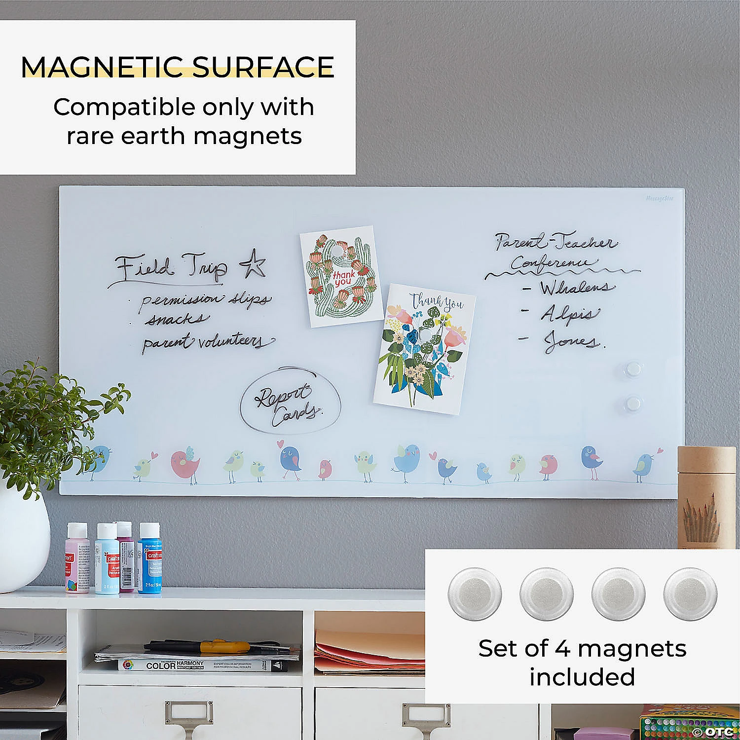 A simple way to keep you productive and organized. MessageStor® Wall-Mounted Glass Boards are the perfect addition to your office or home, making it easy to jot down ideas, reminders, and keep important items at hand. This set comes with one 18″ x 36″ glass board and four round rare earth magnets. A prominent visual reminder is helpful for organizing priorities and making group presentations. The contemporary frameless aesthetic will fit with any office or home décor, and the graphic pattern is embedded within the glass so it will never fade or distort. Boards are made from premium tempered glass that provides high-contrast, so your writing is clear and legible; it is durable, scratch resistant and doesn’t stain or ghost. A galvanized steel plate backing transforms this dry-erase board into a magnetic surface that is compatible only with rare-earth magnets. Mount the boards horizontally to fit your space. All mounting hardware is included and parts are hidden behind the glass for a minimalist look and more work space. Clean with felt eraser or dry-erase cleaner; dry-erase markers and eraser not included. Rated GREENGUARD [GOLD] for low VOCs and healthier indoor air. Special Shipping Information: This item ships separately from other items in your order. This item cannot ship to a P.O. Box. This item may be subject to additional processing days. ITEM IS NOT ELIGIBLE FOR EXPEDITED SHIPPING You may initiate a return for unused items within 30 days, if the items are in original packaging with all original materials included with the shipment.