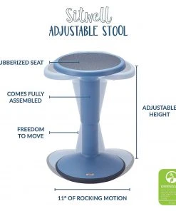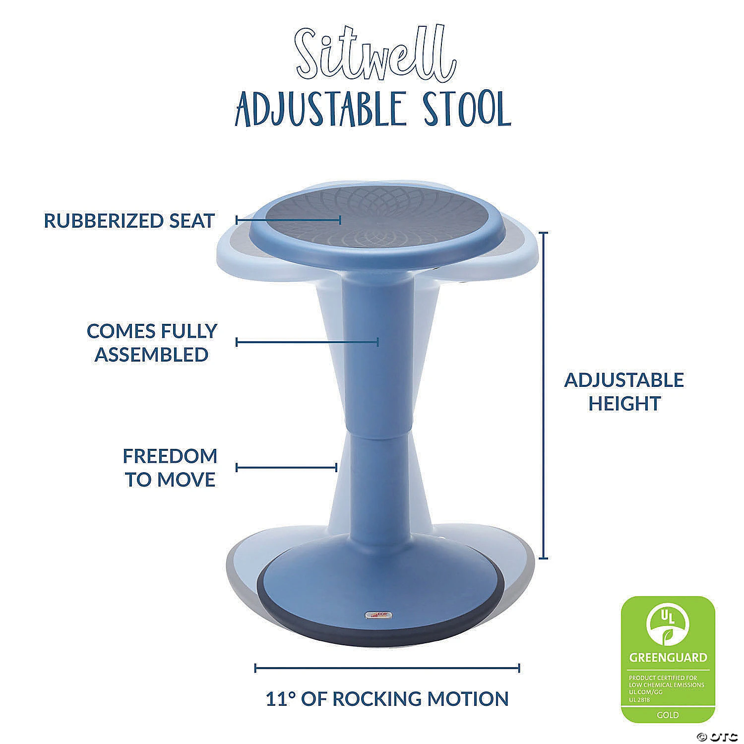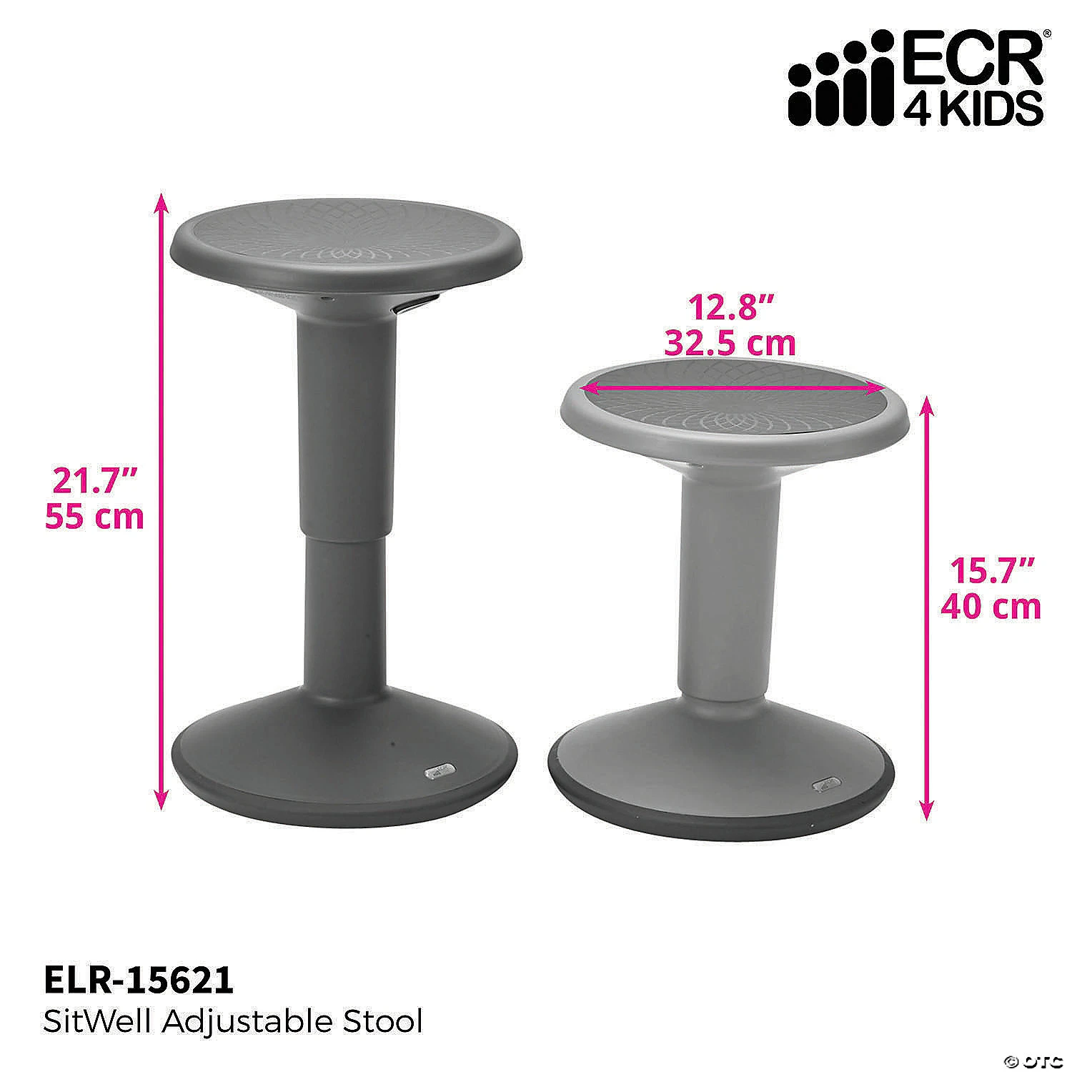 Little ones aren’t the only one with energy to burn! Kids age 12 and older can wiggle and wobble as they learn thanks to the rounded bottom of The SitWell Adjustable Stool. This motion keeps the core engaged while strengthening posture. With the push of a button, the seat adjusts from 15.7″ to 21.7″ high to accommodate growing children. Requires 105 lbs to adjust the seat down; 250 lbs max weight. User should keep both feet on the ground at all times to remain stable. Recommended for children ages 12 years+. No assembly required. SitWell Stools are GREENGUARD[GOLD] Certified for minimal chemical emissions into indoor air during product use. With a concentration on the Pre K-12 sector, ECR4Kids offers a wide range of products including classroom tables and chairs, preschool rest time solutions, hardwood storage cases, blocks and manipulatives, mobile organizers and a variety of indoor and outdoor play structures.Special Shipping Information: This item ships separately from other items in your order. This item cannot ship to a P.O. Box. This item may be subject to additional processing days.Special Shipping Information: This item ships separately from other items in your order. This item cannot ship to a P.O. Box. This item may be subject to additional processing days. ITEM IS NOT ELIGIBLE FOR EXPEDITED SHIPPING