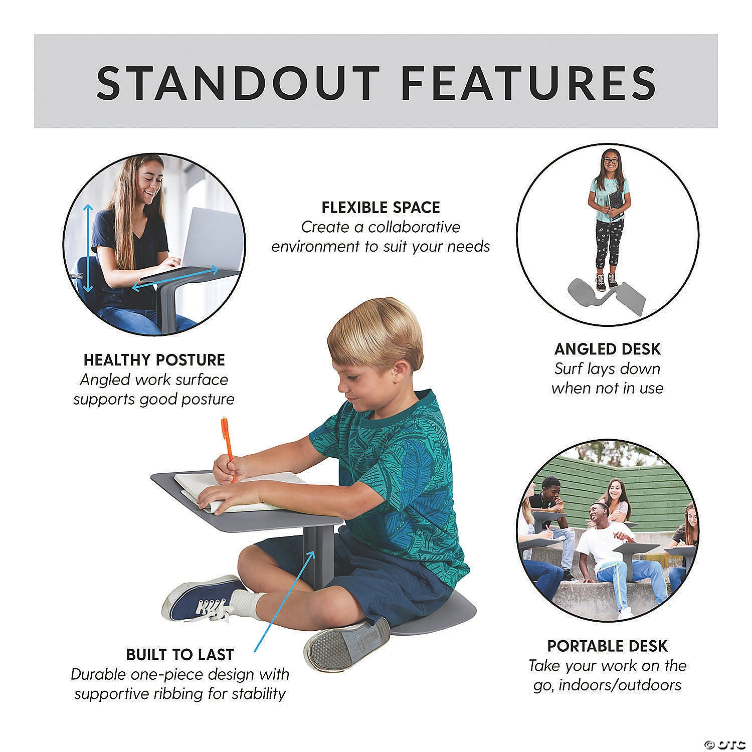 Catch the portable surface wave with the Surf from ECR4Kids. This mobile activity tray table ensures you have a surface for your laptop or notebook wherever you need it. Both a seat and a surface, the Surf lets you work comfortably on the lawn, at the park, in your classroom chair, or on the floor. It’s the perfect addition to both classrooms and homeschool programs—students are no longer constrained to a stationary desk when they need to write or type. The one-piece polypropylene design is portable and stacks for easy storage when not in use. It’s designed for ages 6 and up. The ECR4Kids kids seating is GREENGUARD [GOLD] Certified because we believe kids deserve the very best. Products that have achieved GREENGUARD certification are scientifically proven to meet some of the world’s most rigorous third-party chemical emissions standards. Our flexible seating is safety tested to ensure safe learning and CPSIA (Consumer Product Safety Improvement Act) compliance. We adhere to strict safety regulations that ensure your child’s wellbeing. ECR4Kids is committed to enhancing education in the classroom and at home. We specialize in a wide range of high-quality educational furniture and supplies. We’re your partner for pre-K and beyond.