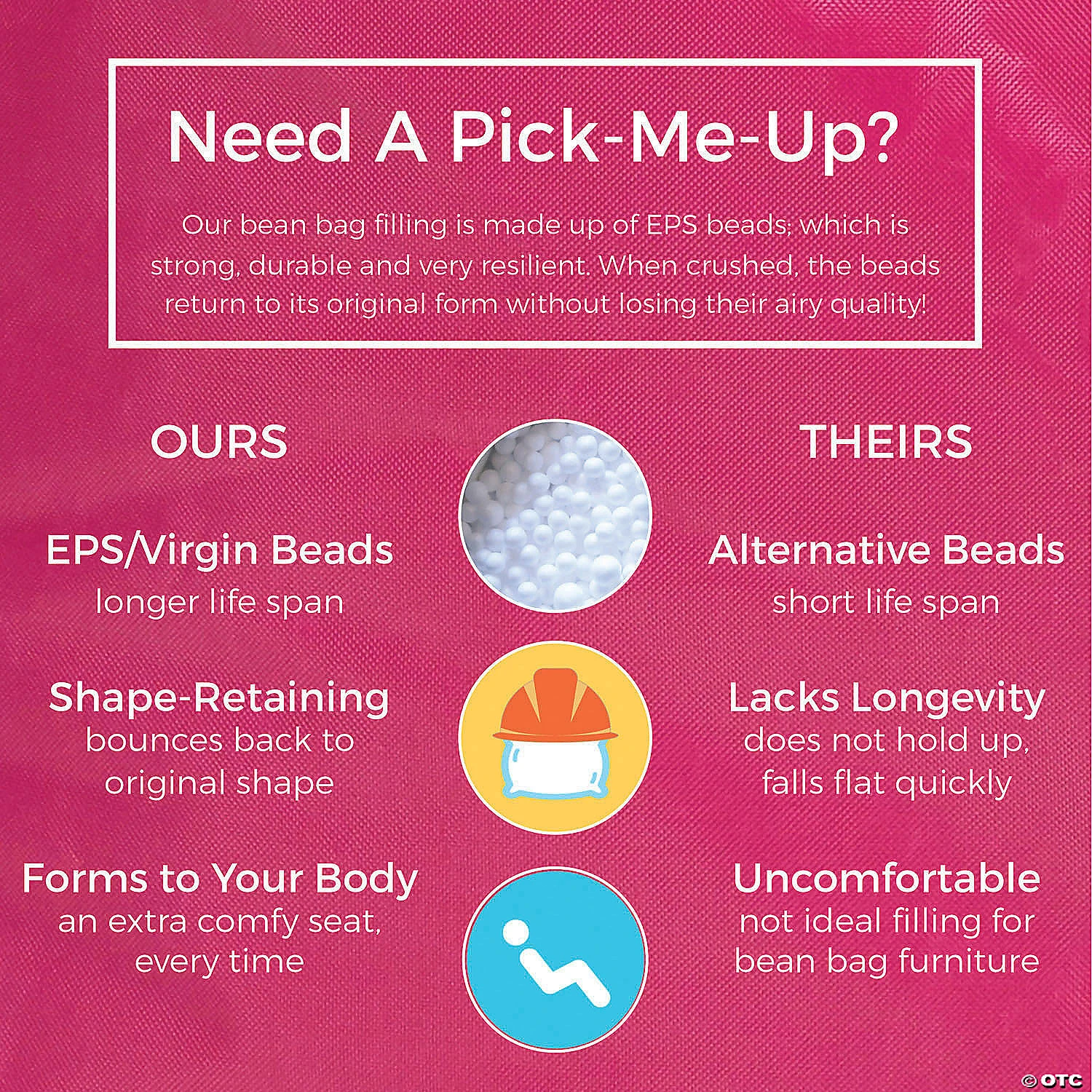 Kids love to take this favorite cushy seat with them everywhere! The Cali Alpine Bean Bag Chair is lightweight with built-in handles for easy portability from living room to garage and even dry trips outside. Ruggedly durable coated Oxford nylon cover is water-, stain-, tear-, and abrasion-resistant for all kinds of little adventures. Filled with shape-retaining foam beads that form to body contours then re-expand back to their original shape for a comfy seat every time. Double-stitched seams and childproof locking zippers keep the foam beads safely inside. Cali Bean Bags can handle the wear and tear of home, school or commercial environments. Available in new fresh colors that match any style and brighten up any space! Do not leave outside; not waterproof – do not use on damp ground or surfaces. Special Shipping Information: This item ships separately from other items in your order. This item cannot ship to a P.O. Box. This item may be subject to additional processing days. ITEM IS NOT ELIGIBLE FOR EXPEDITED SHIPPING