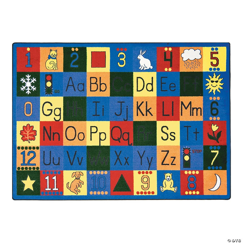 Looking for a carpet to brighten your classroom? Children will find numbers, uppercase and lowercase alphabets, the seasons, shapes, animals, and lots of fun on this multicolor rug. The Around The Block® rug is a great way to create a special space for reading, group activities or story time. 100% Stainmaster® nylon. © Around the Block