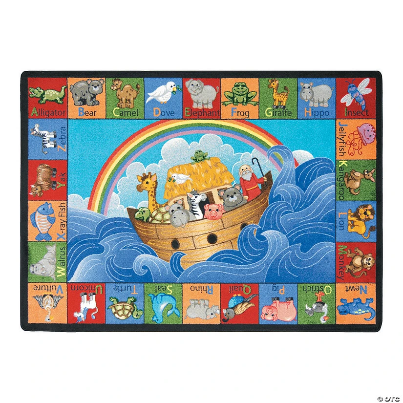 This special ark carries animals whose names begin with all the letters of the alphabet. Decorate your classroom with this fun and functional Noah’s ABC Animals® carpet for a colorful way to define to any space. Now children will be able to practice phonics as they pronounce the names of the animals. This rug makes the perfect functional learning tool for an elementary or Sunday School classroom. 100% Stainmaster® nylon. © Noah’s Alphabet Animals