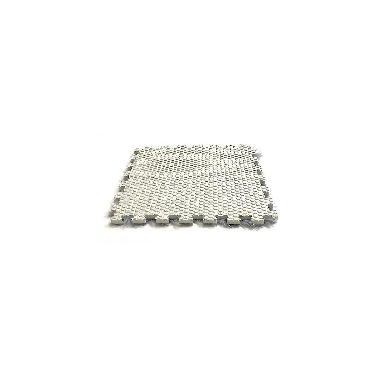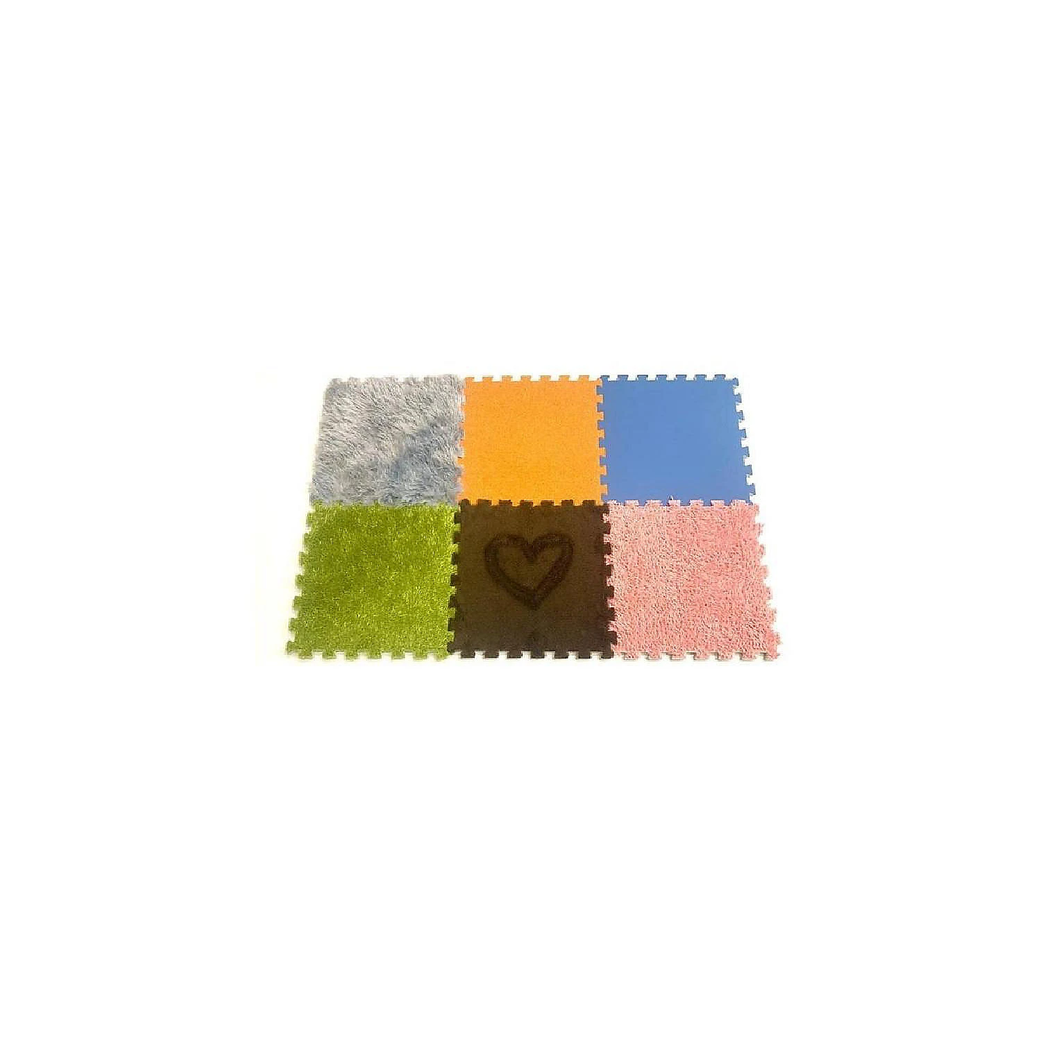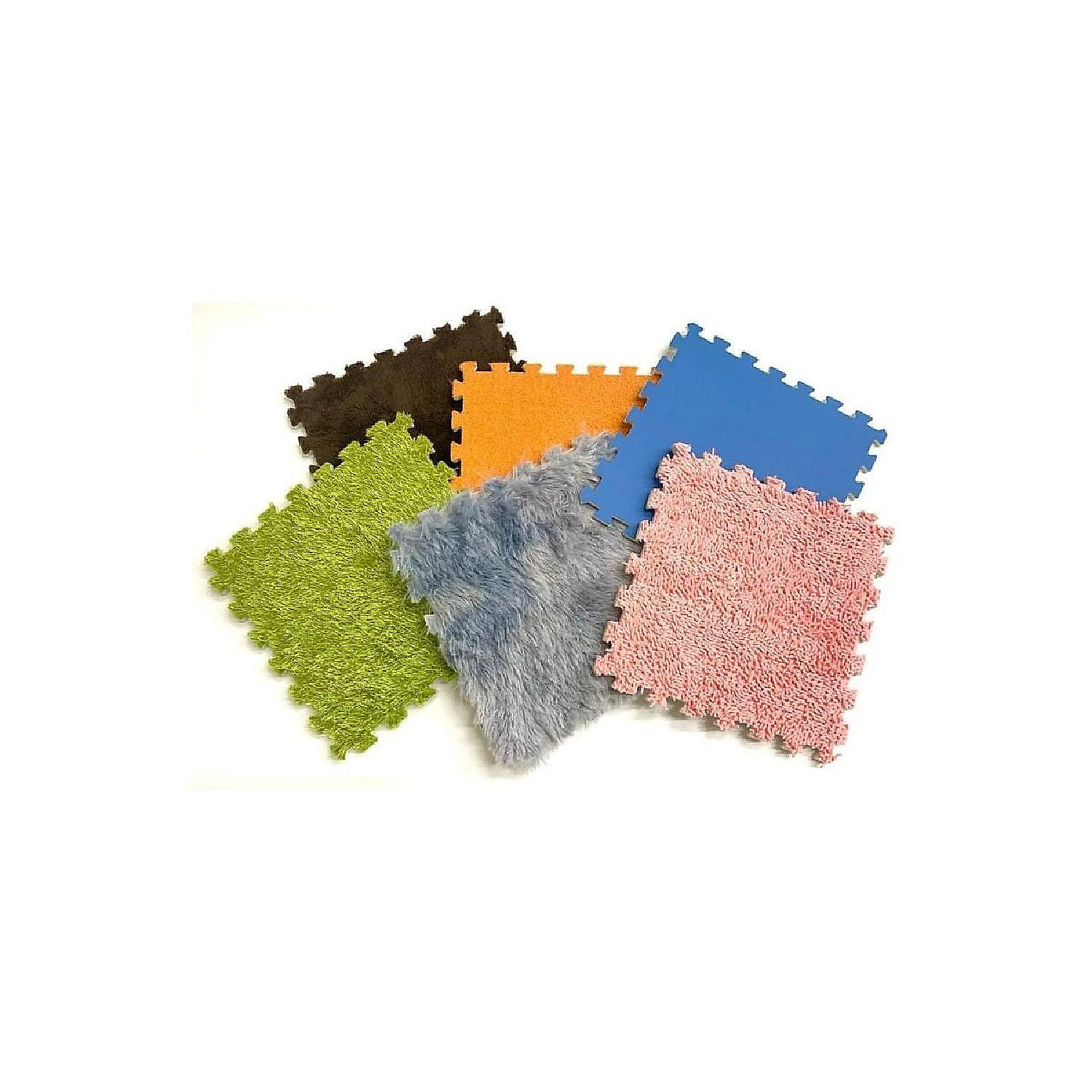 A floor puzzle experience! This floor padding comes with a set of 6 pieces each in a different fabric: leather chenille carpet tassle fur and fleece. Delicious materials underfoot and great tactile feedback!